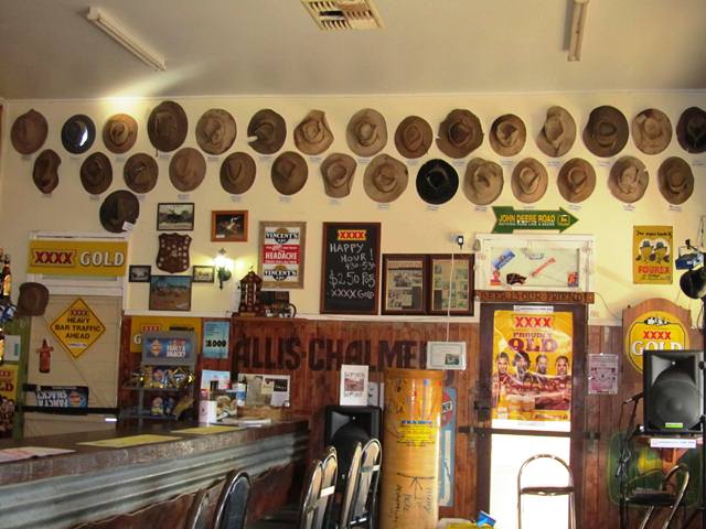 Our first stop was in Burren Junction - a place we first visited in the 70s - BC. Back then we had a midnight swim in the Burren Bore after a fun filled night at the local pub. This time I snapped a wonderful picture at a different pub, but we drove on past of nest of caravans ensconced at the Bore.
